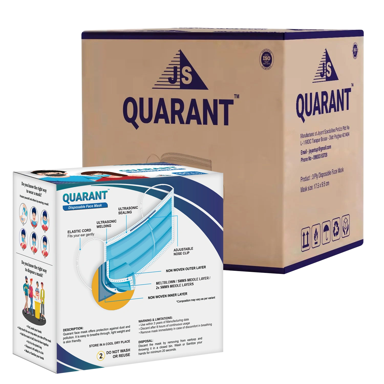 QUARANT 3 Ply Disposable Surgical Face Mask, UV Sterilized, BFE & PFE >98%, ISI, BIS, CE & ISO Certified, ASTM Level 3, Meltblown Layer Fabric Masks with Adjustable Nose Pin for Men and Women, Blue (Available in Pack of 50, Pack of 100 or Pack of 500)