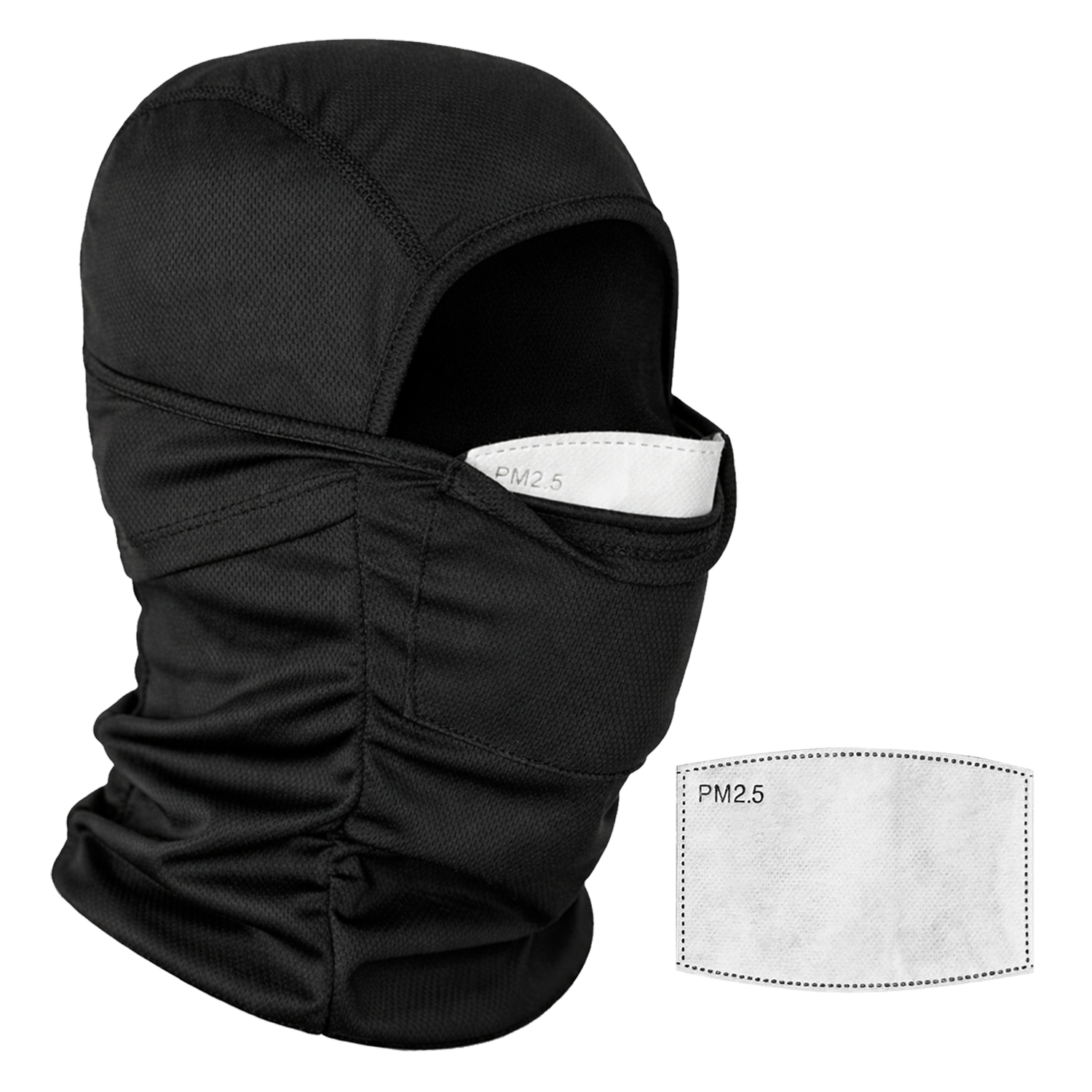 QUARANT Balaclava Full Face Mask with PM 2.5 Filter Pocket, Includes 2 Replaceable PM 2.5 Activated Carbon Filters Filters (Black) for Unisex
