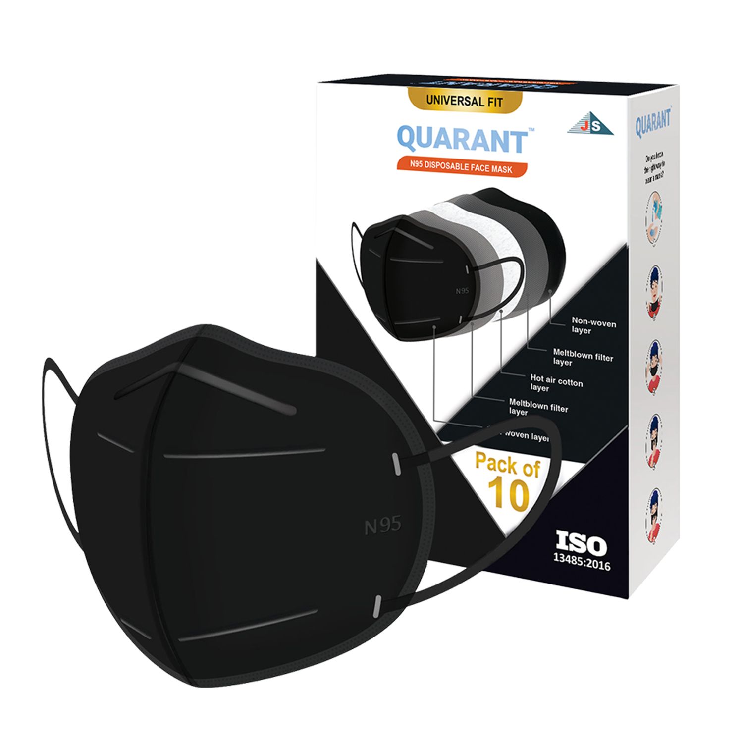 QUARANT N95 Face Mask with Adjustable Nose Pin for Adults, Masks with 5 Layer Protection for Men and Women (Black)