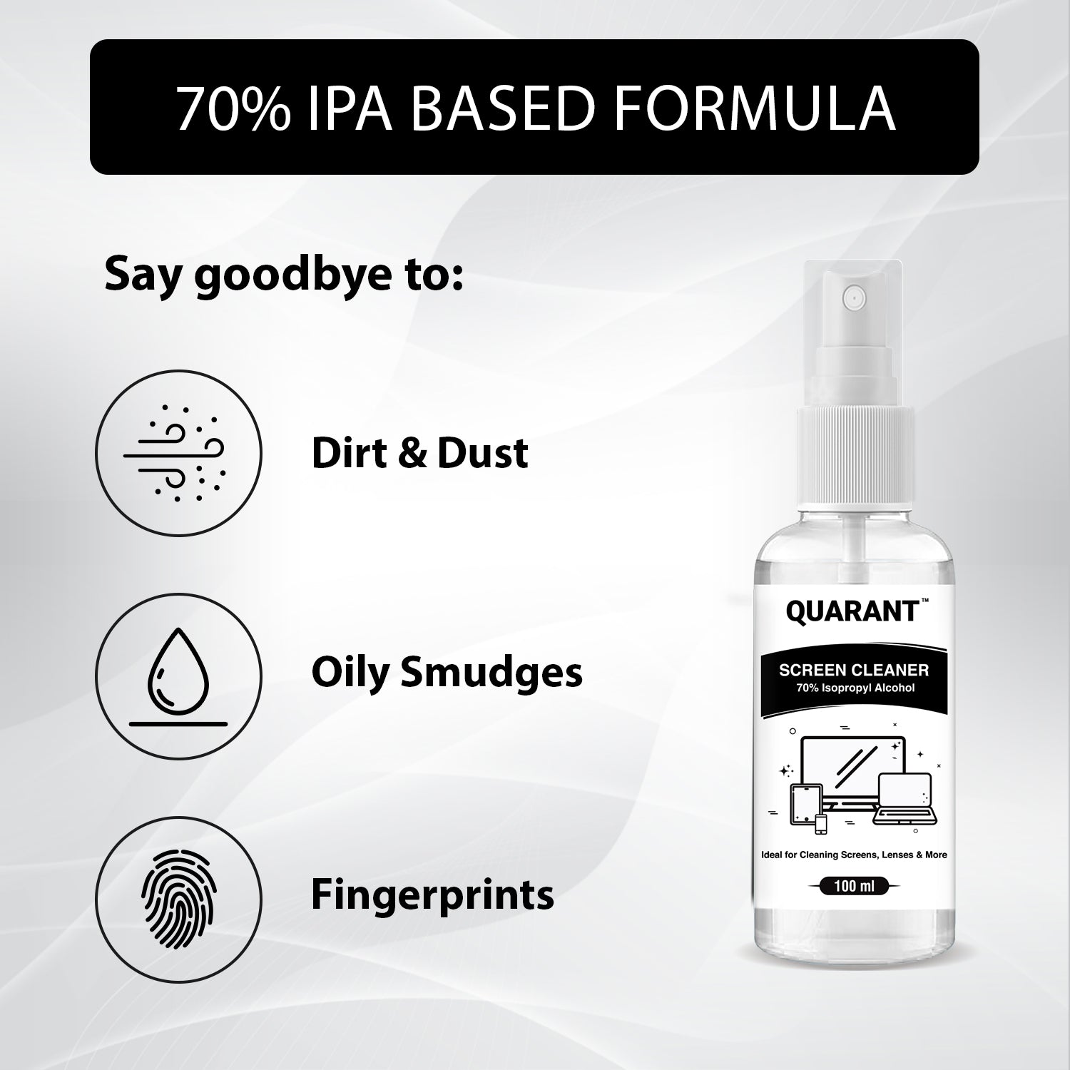 - Quick-drying formula: Our 70% isopropyl alcohol-based formula ensures quick evaporation without leaving streaks or residue, leaving your screens crystal clear and refreshed.