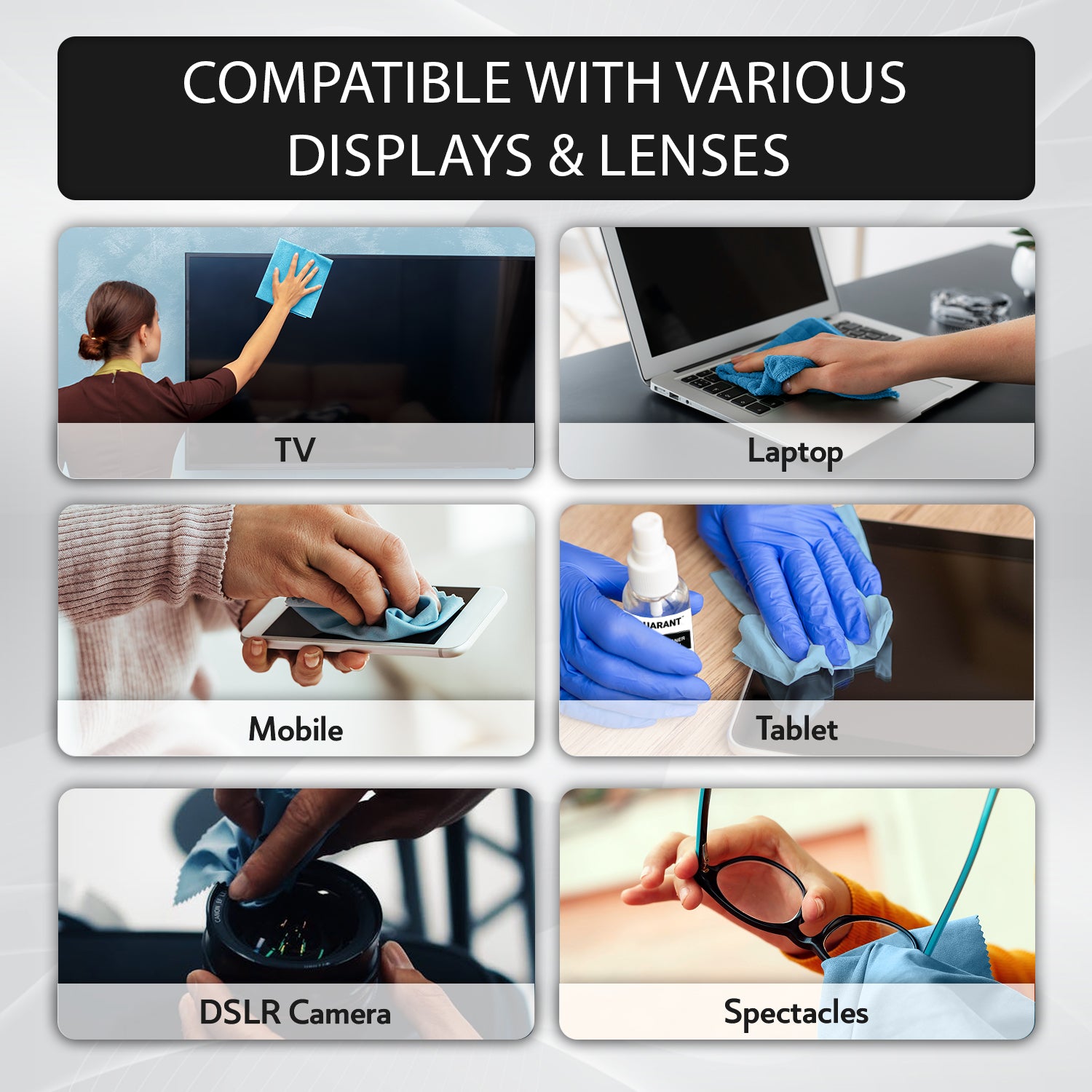 - Universal Compatibility: Safe for use on devices such as mobiles, tablets, laptops, TVs, computer monitors and other electronic displays or lenses such as cameras, spectacles, projectors and more.